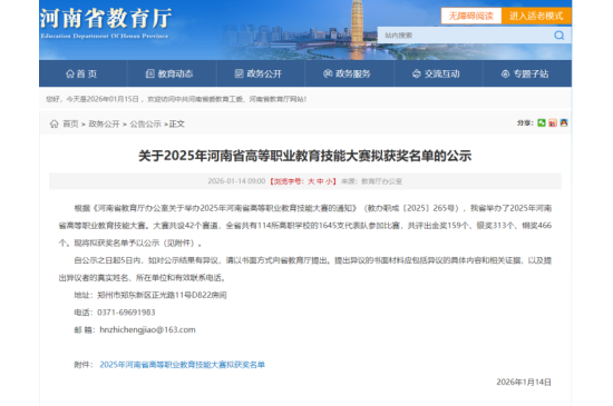近日,河南省教育厅公布《2025年河南省高等职业教育技能大赛拟获奖名单》,我校参赛团队不负众望、奋勇拼搏...