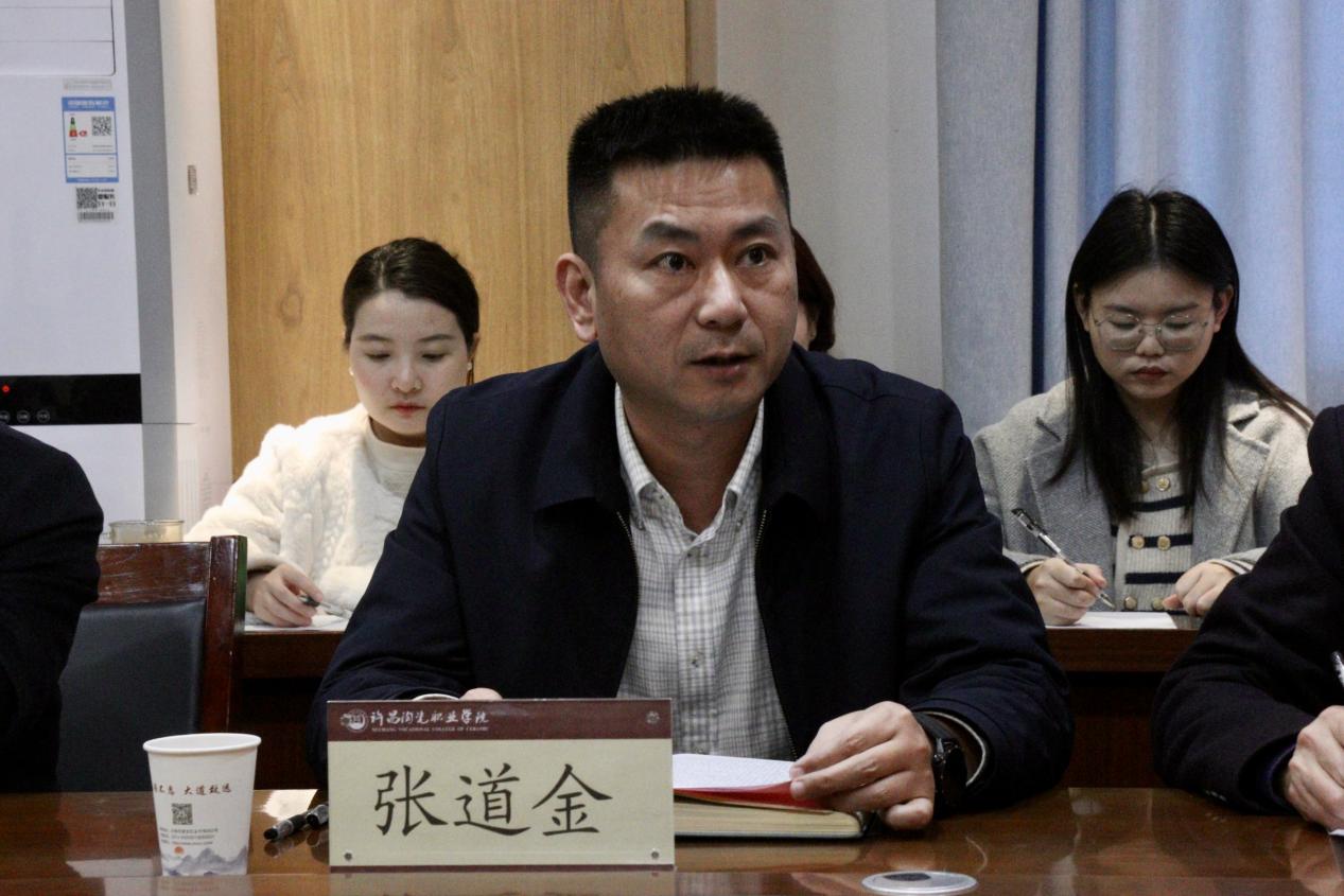 张道金对马克思主义学院取得的工作成效给予了高度赞赏与充分肯定,在此基础上,他立足马院长远发展提出四点指导性要求:一是提高政治站位,锚定重点马院定位。学校将把马院作为重点马院来打造,把思政课作为重要课程来建设。二是聚焦内涵建设,打造陶瓷特色品牌。构建与学校特色高度契合、辨识度显著的思政课程体系。三是强化队伍建设,夯实人才培养根基。通过定期开展专业技能培训与学术研讨活动,打造一支业务精湛、富有创新精神的师资队伍。四是健全协同机制,凝聚全校合力。学校各部门对接马院需求,形成上下联动、左右协同的格局。