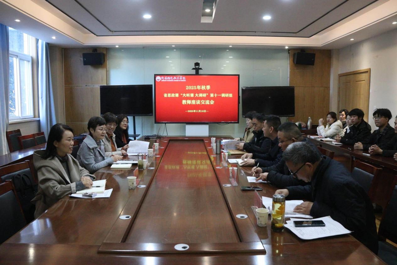 为深入贯彻习近平总书记关于学校思政课建设的重要指示精神,按照《中共河南省委教育工委办公室 河南省教育厅办公室关于开展 2025 年度全省高校秋季学期思政课“大听课 大调研”活动的通知》(教思政函〔2025〕532 号)文件要求,11月18日上午,第十一调研组陈娱教授一行4人莅临我校开展听课调研活动。党委副书记、院长张道金,副院长王中亚、冯朝印,马克思主义学院领导班子成员和教师代表参加调研活动。