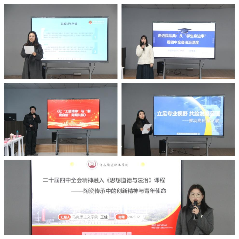为深入学习贯彻党的二十届四中全会精神,推动大中小学思政课一体化建设,12月19日,许昌市大中小学思政课一体化(许昌陶瓷职业学院片区)党的二十届四中全会精神融入思政课教学集体备课活动在我校青年之家活动中心成功举办。学校副院长冯朝印、马克思主义学院领导班子,鄢陵县教体局、许昌工商管理学校、许昌市第十二中学、许昌市凤雏机电工程学校领导及思政课教师代表共同参与此次活动。