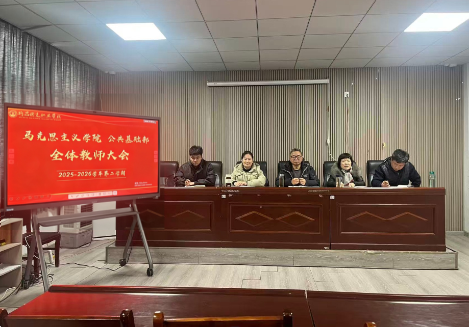 3月7日下午,马克思主义学院、公共基础部在101会议室召开2025-2026学年第二学期全体教师大会。会议由马克思主义学院院长助理瞿园园主持,马克思主义学院党支部书记、公共基础部主任王中立,马克思主义学院张院长、公共基础部副主任及全体教师参加。