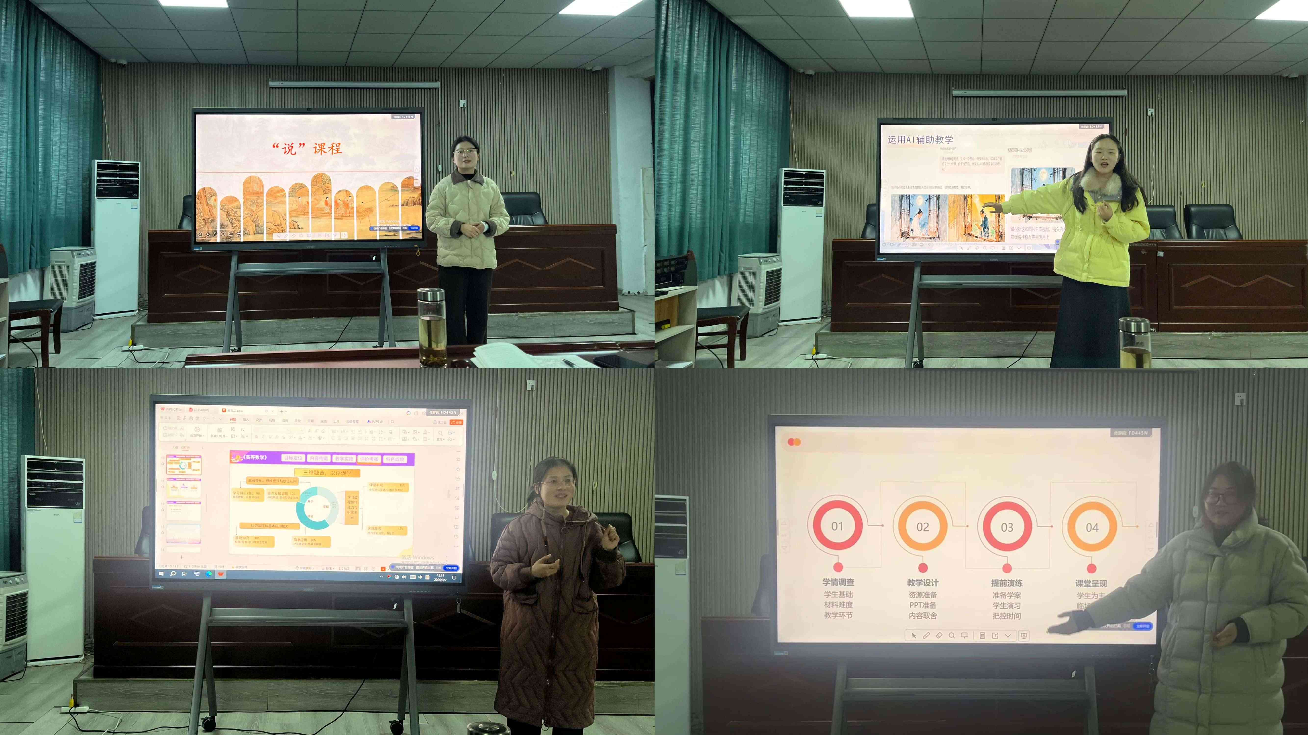 经验交流环节,作为‘国培计划’述学代表,董尹文、王轲茹两位老师,分别就‘如何说课程’的实战策略与‘AI技术赋能教学’的创新应用作了精彩分享;身为省级教学技能大赛获奖者,颜亚如、李思奇两位老师则重点讲述了‘教学创新实践’及‘劳动教育优质课感悟’。他们结合亲身实战经验,从不同维度剖析了教学痛点与创新路径,为在场教师提供了宝贵的借鉴与启示,现场互动热烈,氛围浓厚。