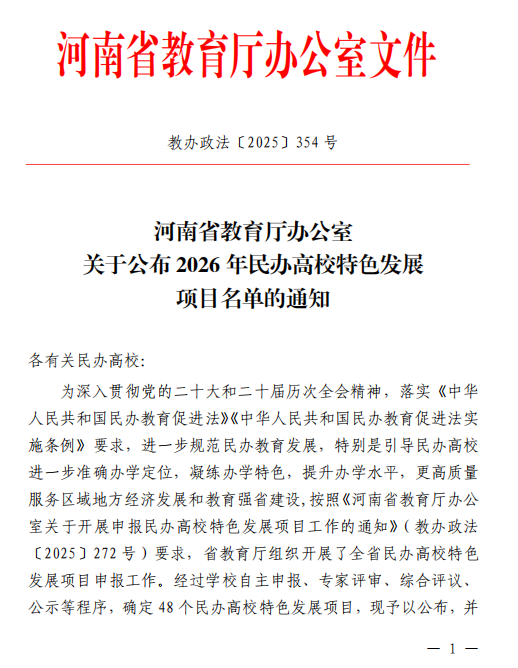 近日,河南省教育厅公布2026年民办高校特色发展项目名单,我校机电一体化技术专业(专业代码:560301)成功...