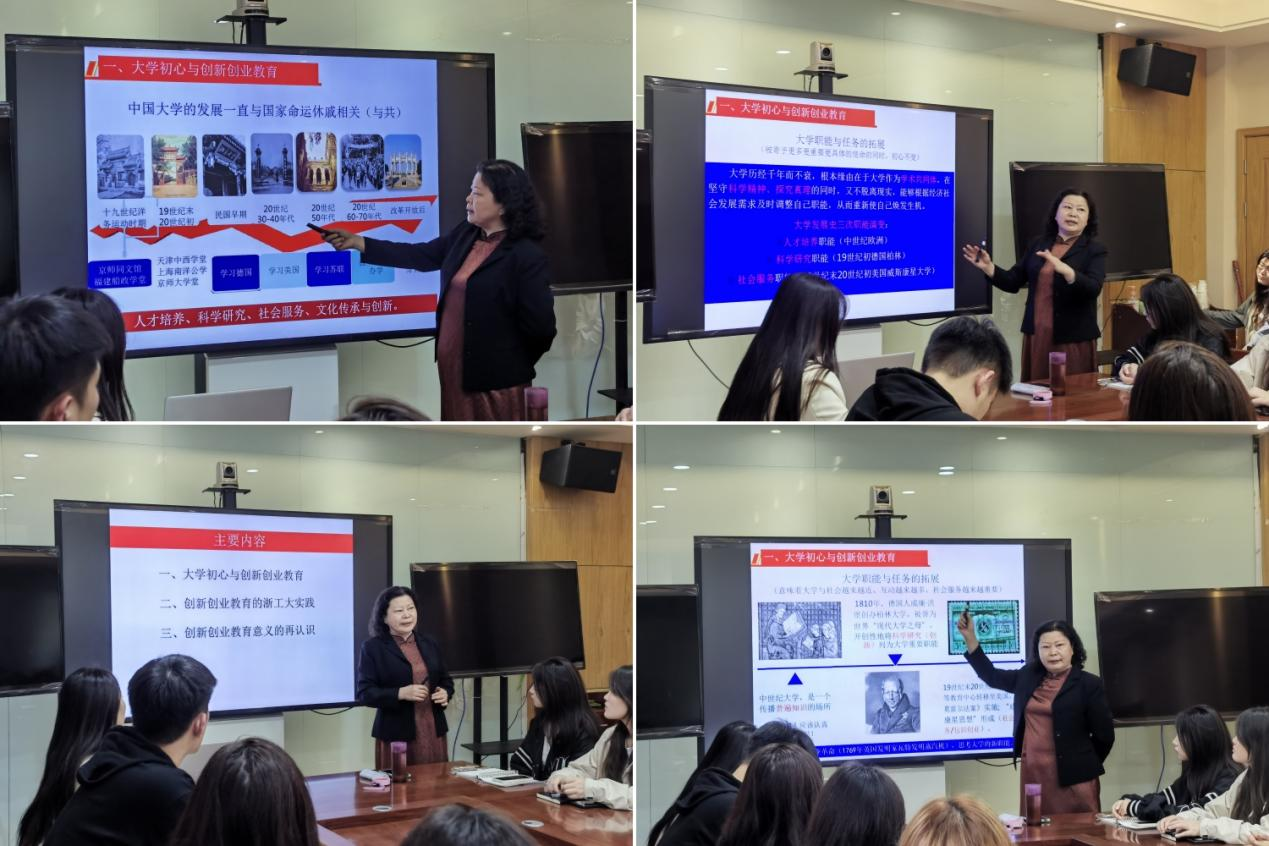 牛艳君老师以大学生创新创业教育的思考与实践为主题,围绕大学初心与创新创业教育、创新创业教育的浙工大实践、创新创业教育意义的再认识三方面,简要阐述了大学的职能与任务、职业院校创新创业教育的重要性和必要性,详细解读了大学生创新创业典型经验做法,深入剖析了开展创新创业教育的目的和意义。讲座最后,牛艳君老师针对师生提问进行了现场解答。