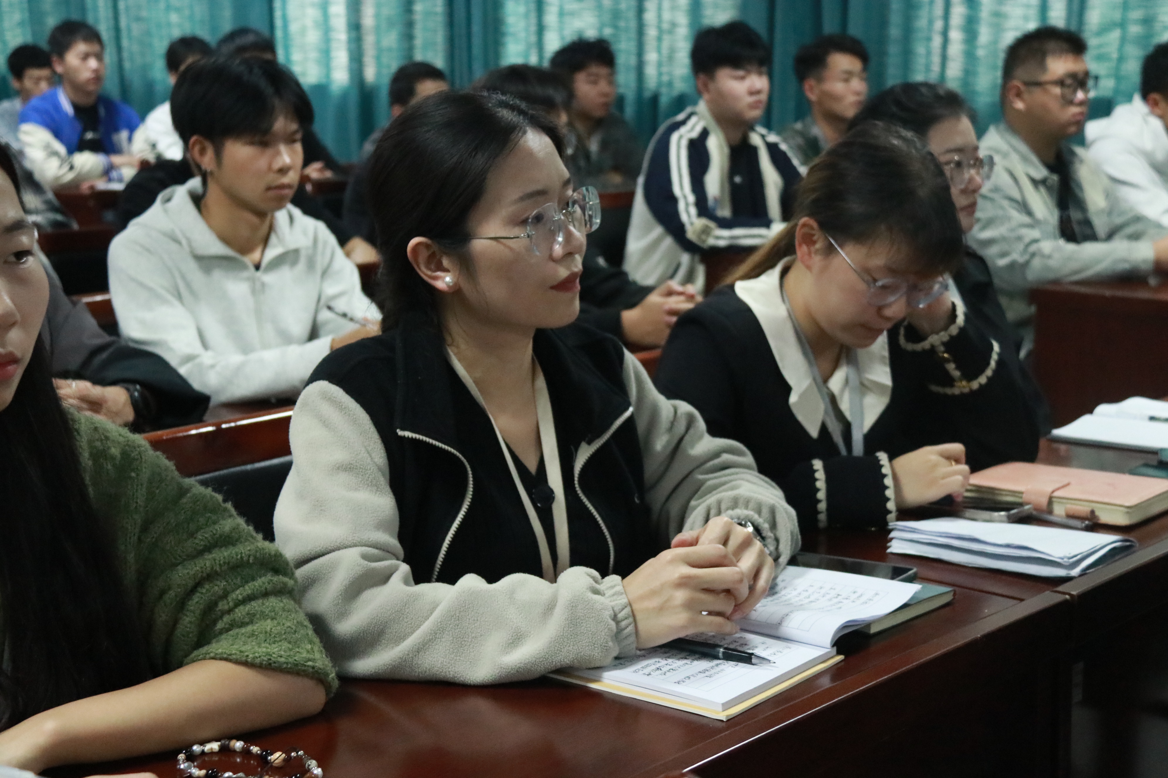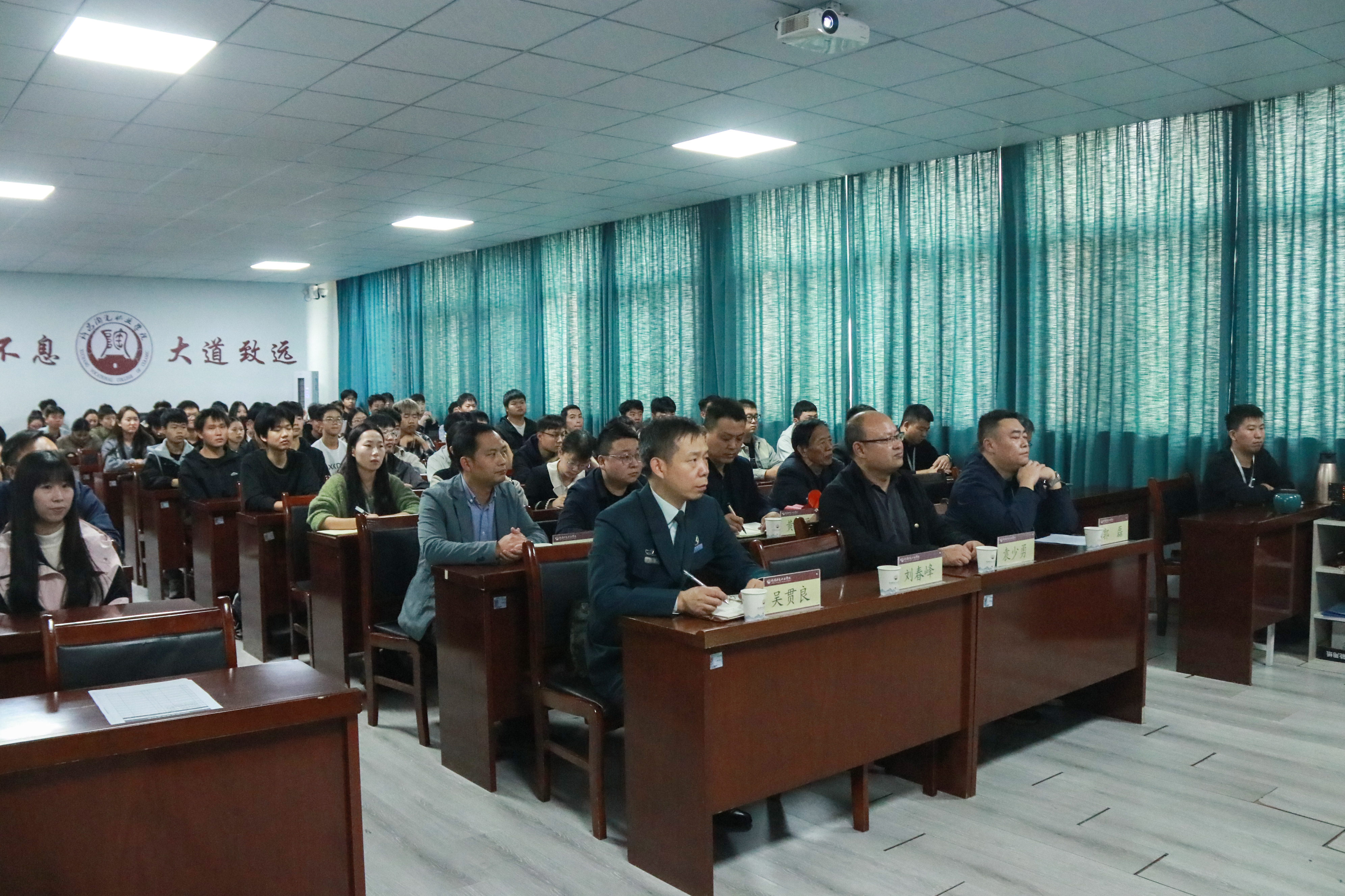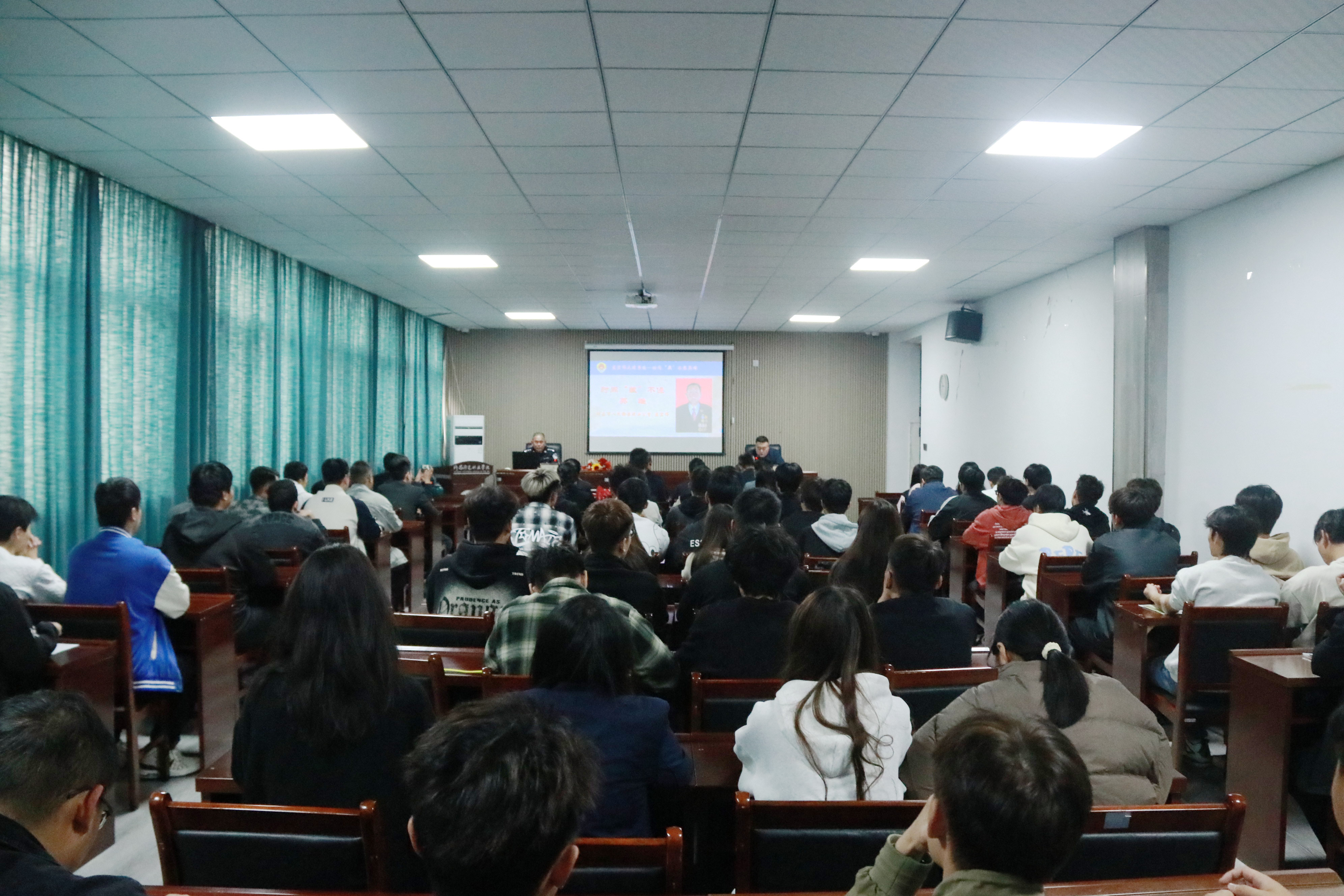 出席本次讲座的领导和嘉宾分别有,建安区退役军人事务局局长刘春峰,建安区武装部政工科科长吴贯良,建安区退役军人事务局副局长袁少勇,对越作战一等功臣刘怀亮,勇斗歹徒一等功臣孟宏伟,学校纪委书记、工会主席郭磊,校党委人民武装部部长、保卫处处长李晓进,校党委宣传部、统战部副部长高豪远。各教学单位的百余名师生代表现场聆听。专题讲座由郭磊主持。