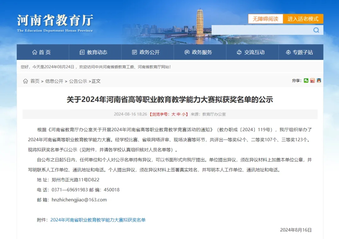 喜报!我校在2024年河南省高等职业教育教学能力大赛中喜获佳绩