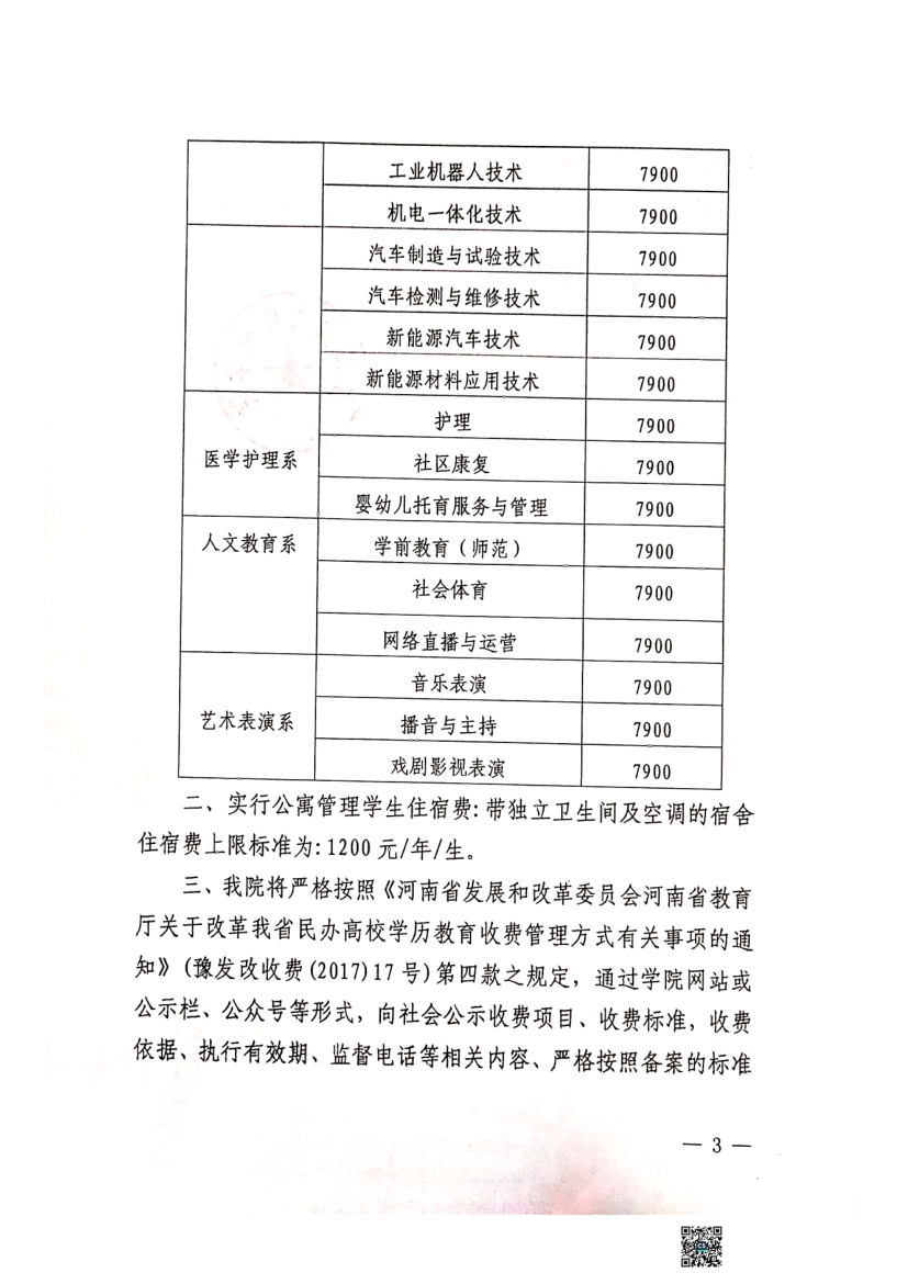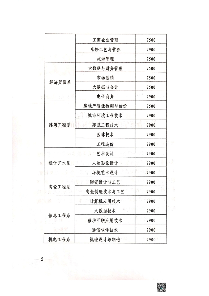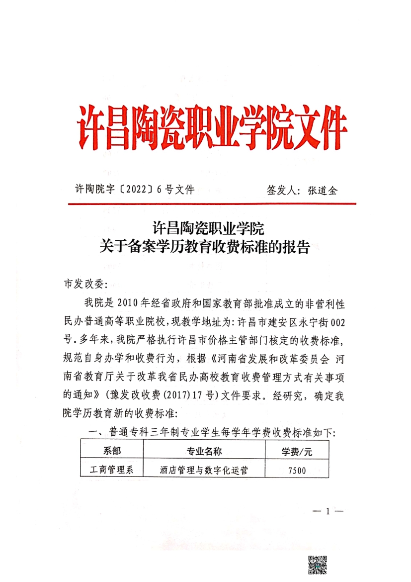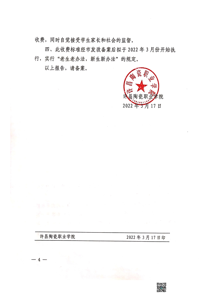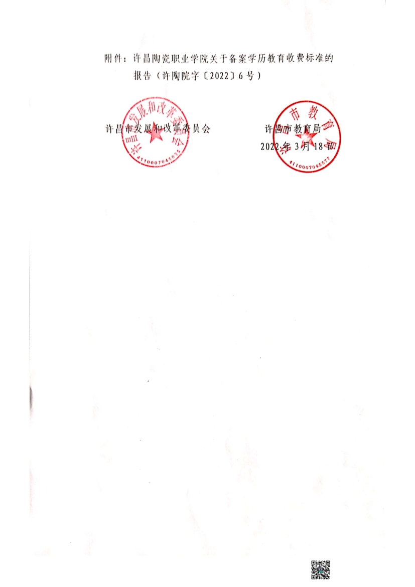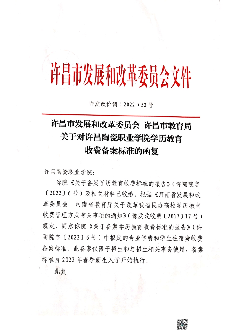 许昌陶瓷职业学院学历教育收费标准的报告及函复