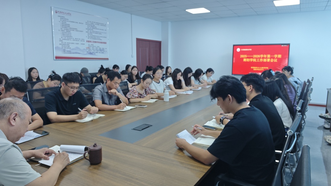 8月27日,智慧康养与人文教育学院在613会议室召开2025——2026学年第一学期期初学院工作部署会议,学院院长赵新军、副院长孟祥林、学管秘书许智博、教学秘书尚举及全体教职工齐聚一堂,共同书写学院发展新篇章。