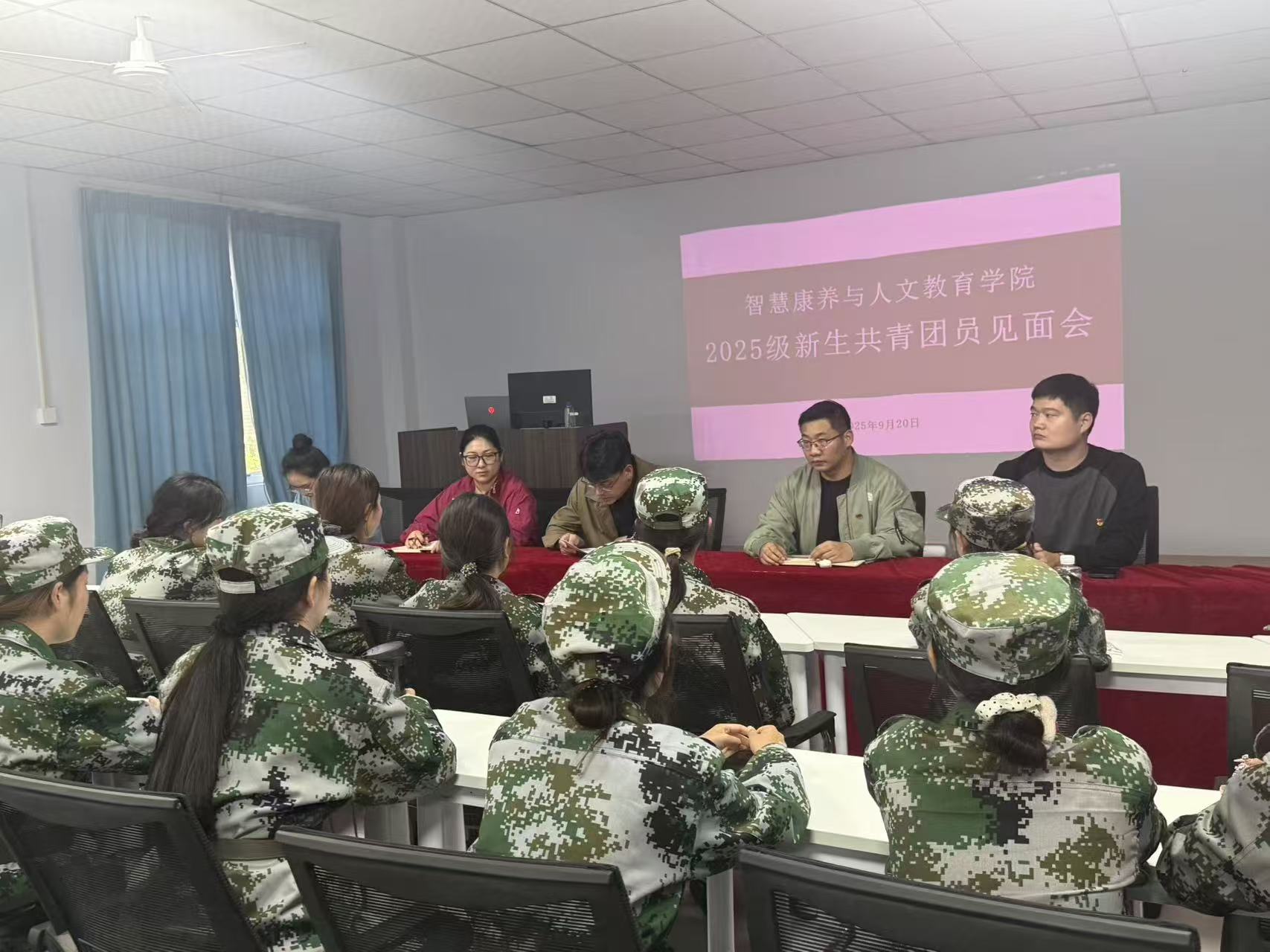 为加强共青团组织建设,增强新生团员的政治意识和归属感,引导广大青年积极向党组织靠拢,2025年9月20日,智慧康养与人文教育学院于三号楼“青年之家”隆重举行2025级新生共青团员见面会。学院党支部副书记许智博、分团委书宁帅、新生辅导员及2025级全体新生共青团员共同参加了本次大会。会议由学院分团委书记宁帅主持。