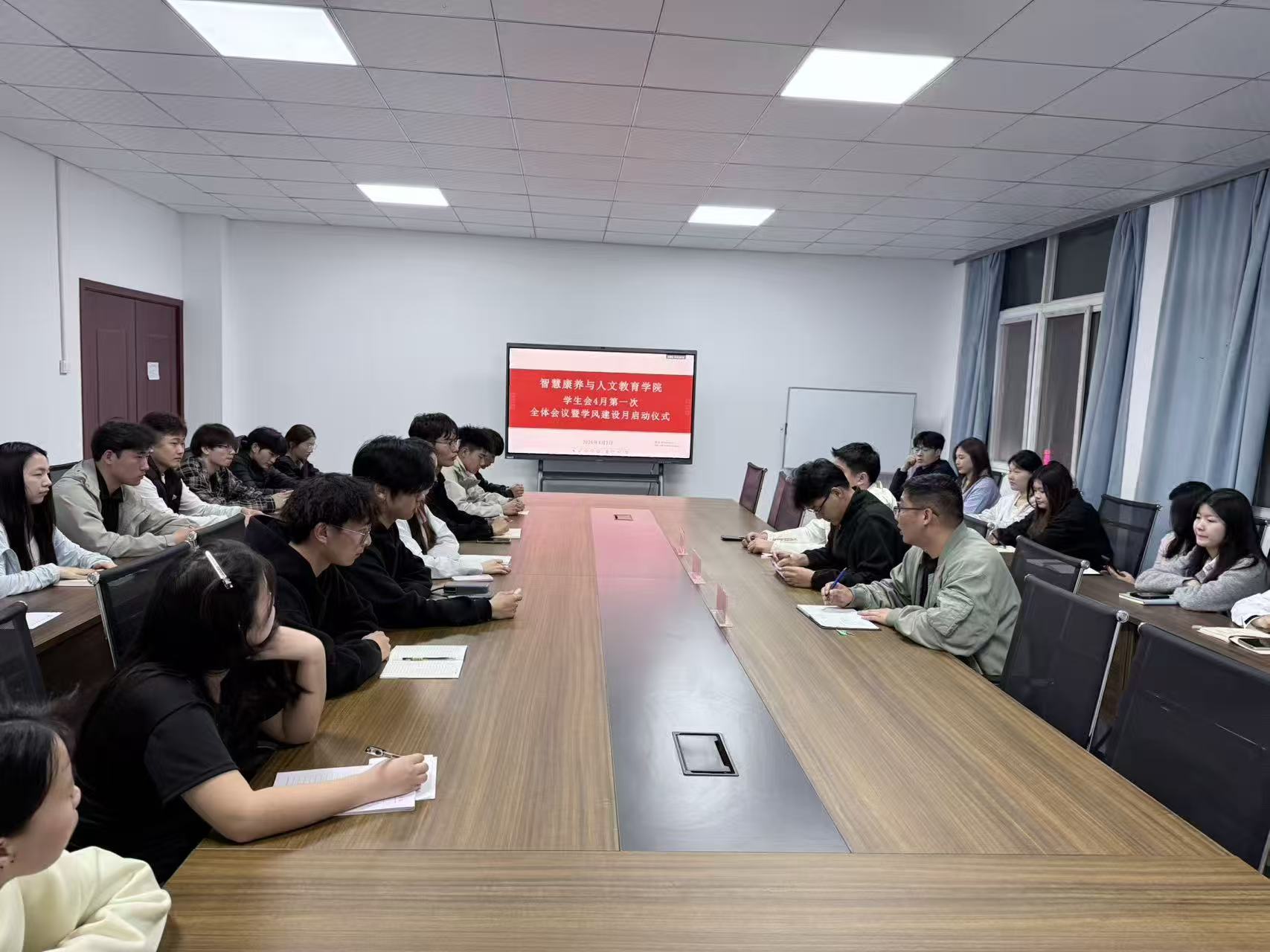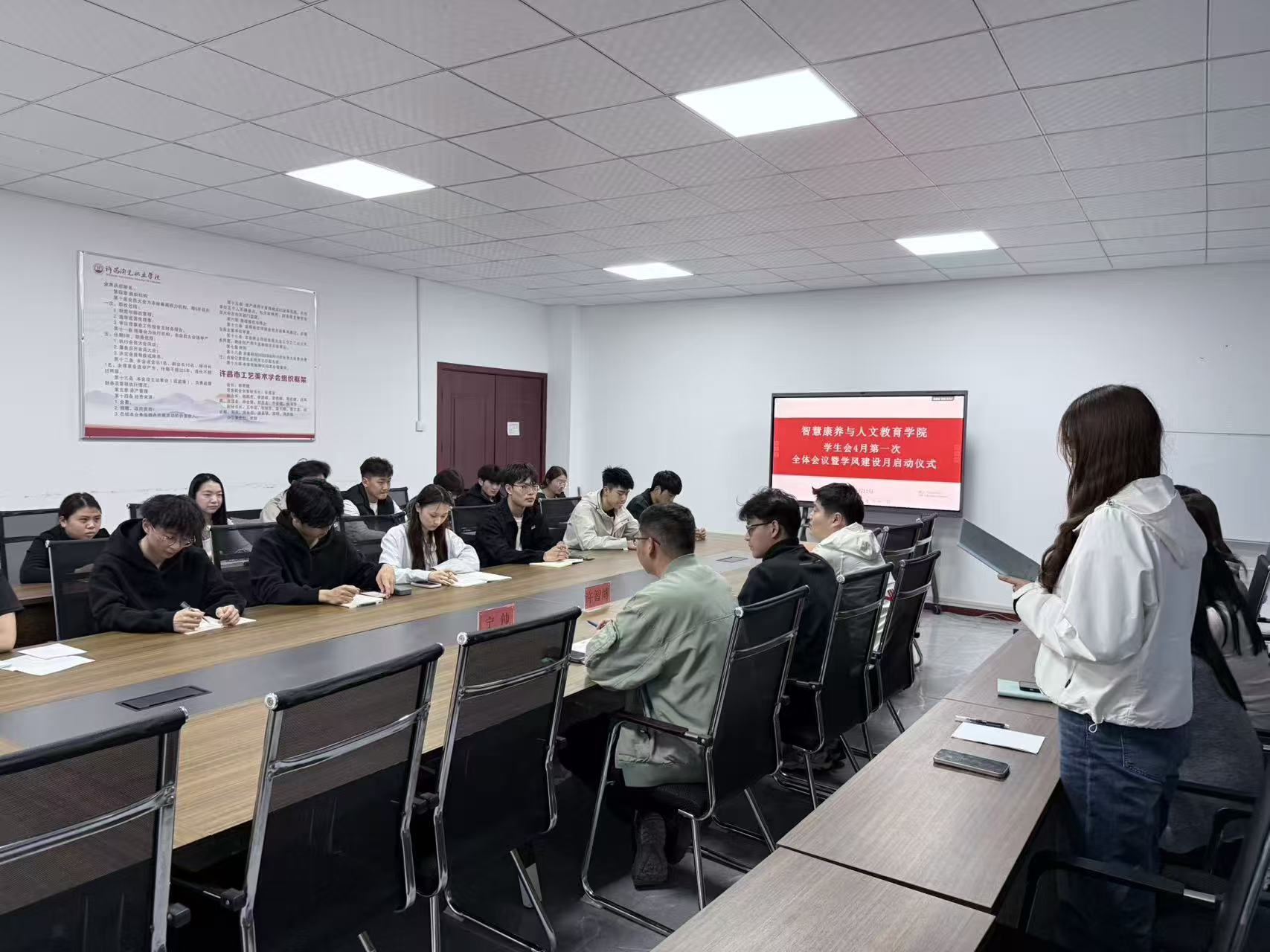 为进一步加强学生会队伍建设,提升学生骨干的责任意识与服务能力,切实发挥学生会在学生自我管理、自我服务、自我教育中的桥梁纽带作用,4月2日,智慧康养与人文教育学院召开四月份第一次学生会全体会议暨学风建设月启动仪式。学院党支部副书记许智博、全体辅导员及学生会全体成员参加会议。