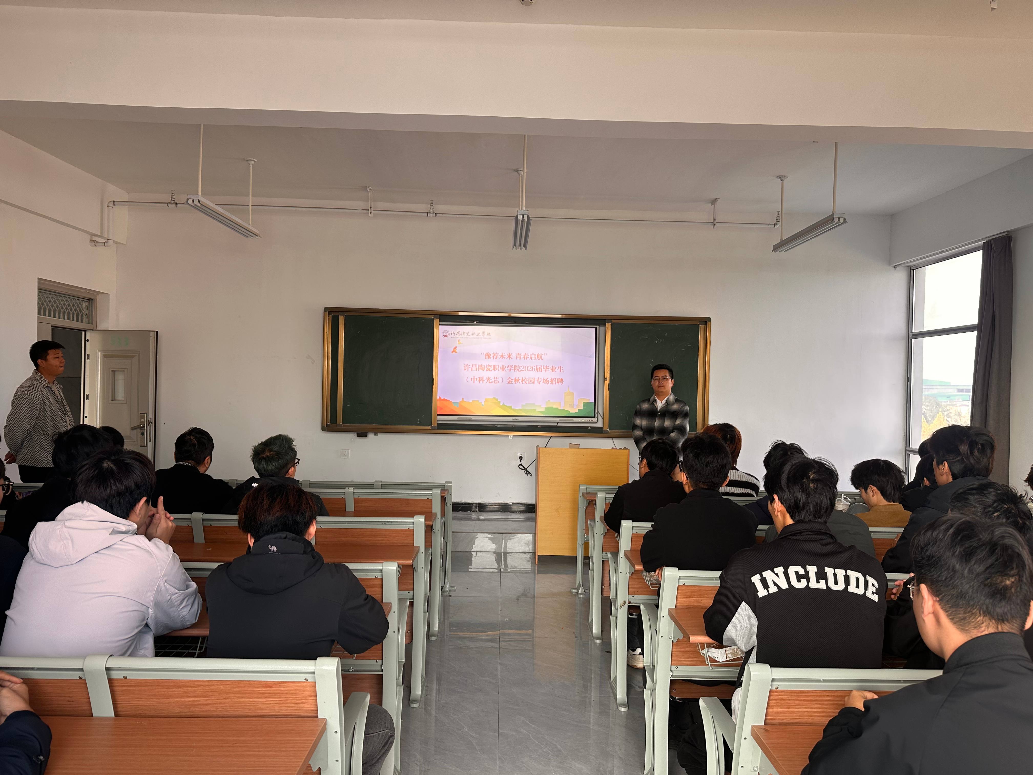 为抢抓秋季促就业关键期,积极搭建校企人才对接桥梁,全力促进2026届毕业生顺利就业,11月17日,深圳市中科光芯半导体科技有限公司来我校开展专场招聘会,机电工程学院智能控制技术,人工智能学院物联网应用技术、大数据技术、移动互联应用技术、数字媒体技术、通信软件技术专业毕业班学生参加。