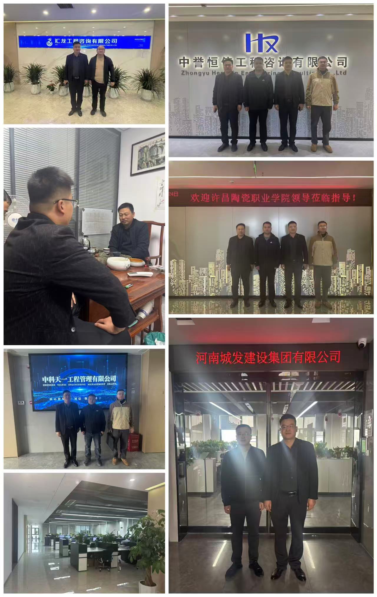 10月24日,陶瓷艺术与智能建造学院党支部副书记卢金刚带领毕业班辅导员一行,前往汇龙工程咨询有限公司、中科天一工程管理有限公司、河南城发建设集团有限公司、中誉恒信工程咨询有限公司四家企业走访调研,围绕学生实习就业与人才培养进行深入交流,并达成多项合作共识。此次走访为后续校企合作的深入开展奠定了坚实基础,也为进一步拓展学生实习就业渠道提供了有力支撑。