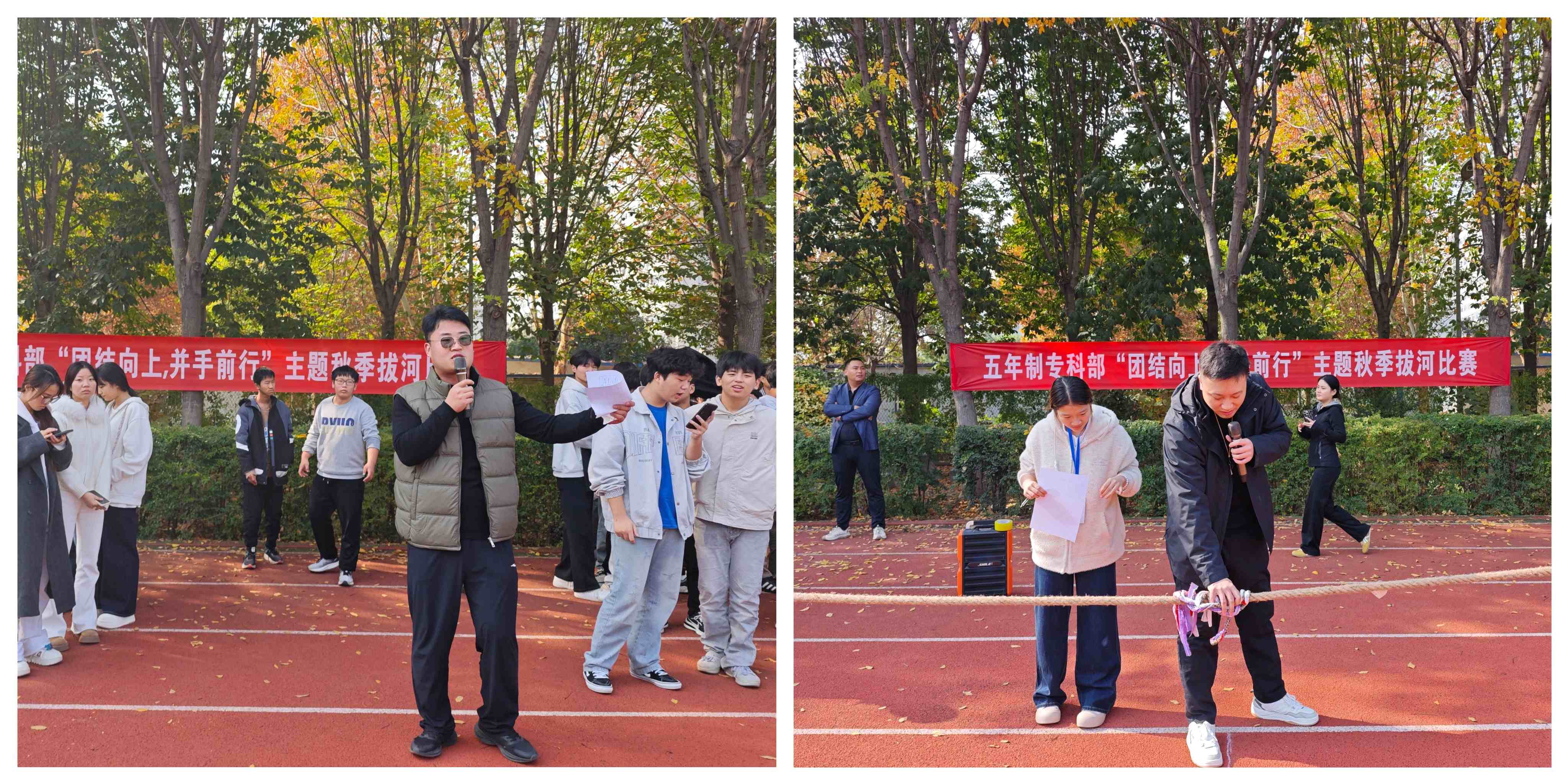 为丰富校园文化生活,提升学生身体素质,培养团队协作精神,11月5日,五年制专科部举办“团结向上,并手前行”主题秋季拔河比赛。师生们齐聚赛场,共同见证了这场力量与意志的较量。