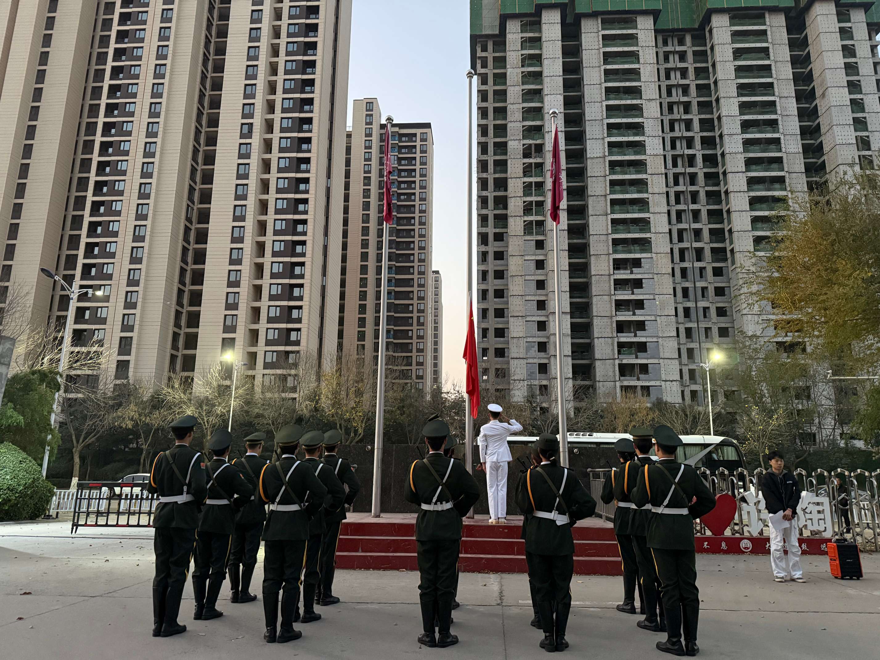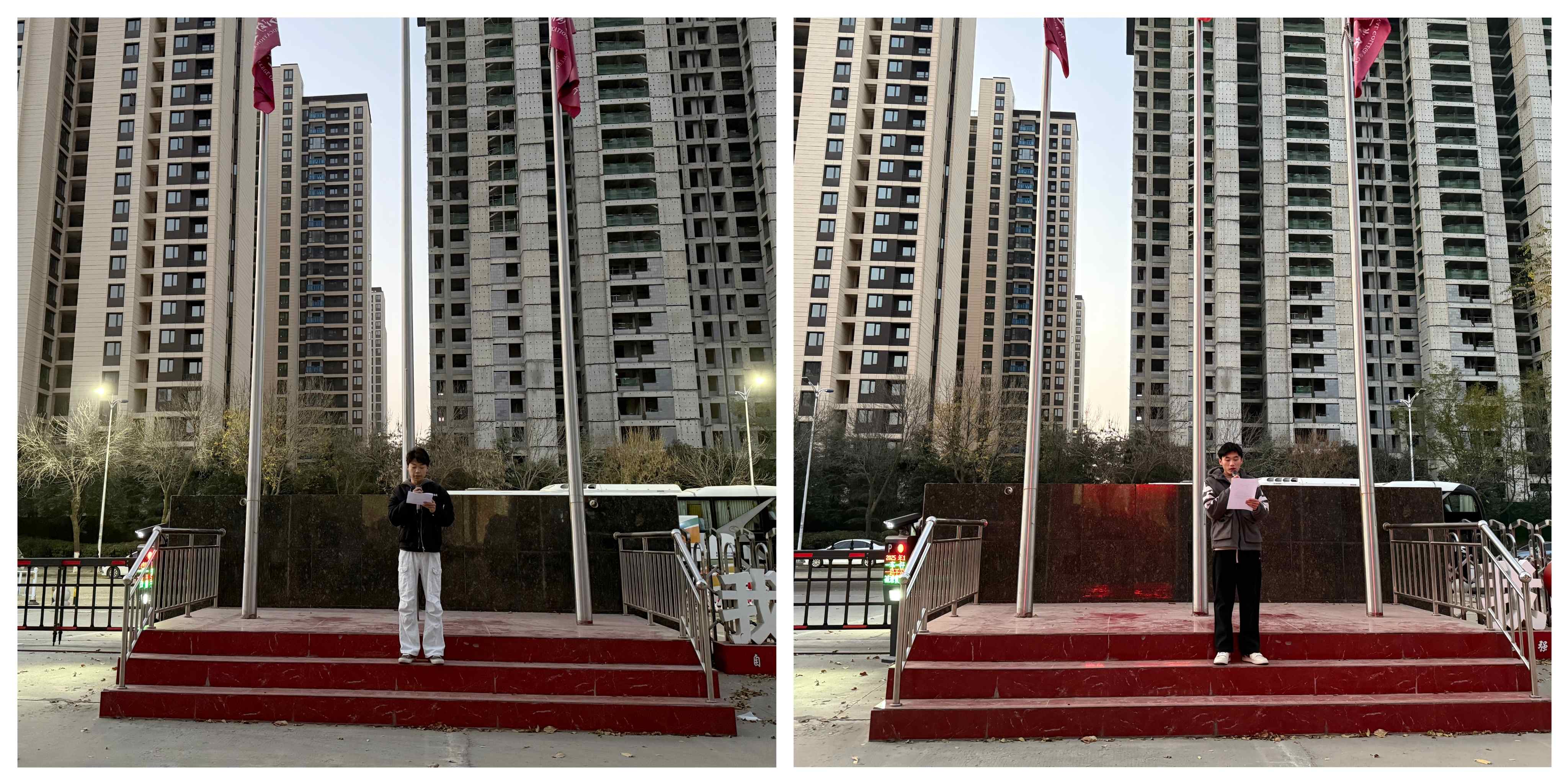 清晨七点整,升旗仪式正式开始。英姿飒爽的国旗护卫队迈着整齐有力的步伐,护卫着五星红旗走向升旗台。在激昂雄壮的国歌声中,五星红旗迎着朝阳冉冉升起,全体学生面向国旗行注目礼,表达对祖国的无限热爱和崇高敬意。
