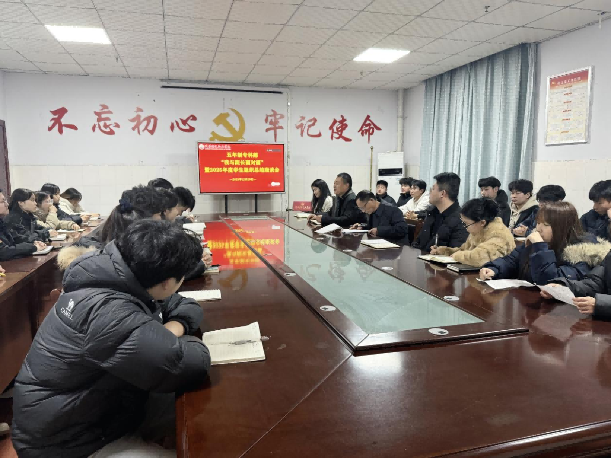 为加强师生之间的沟通与交流,总结2025年度学生组织工作经验,12月29日,五年制专科部召开“我与院长面对面”暨2025年度学生组织总结座谈会。五年制专科部党支部书记、主任宋群立,学生科科长左梁爽,军管科科长黄勇,全体班主任及全体学生干部参加了此次会议,会议由左梁爽主持。