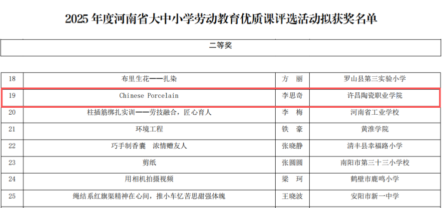近日,河南省教育厅主办的全省劳动教育优质课比赛圆满落幕。经过激烈角逐,我部教师李思奇凭借扎实的教学功底、创新的课程设计和生动的课堂呈现,最终斩获省级二等奖,充分展现了我校教师在劳动教育领域的教学实力与育人风采。