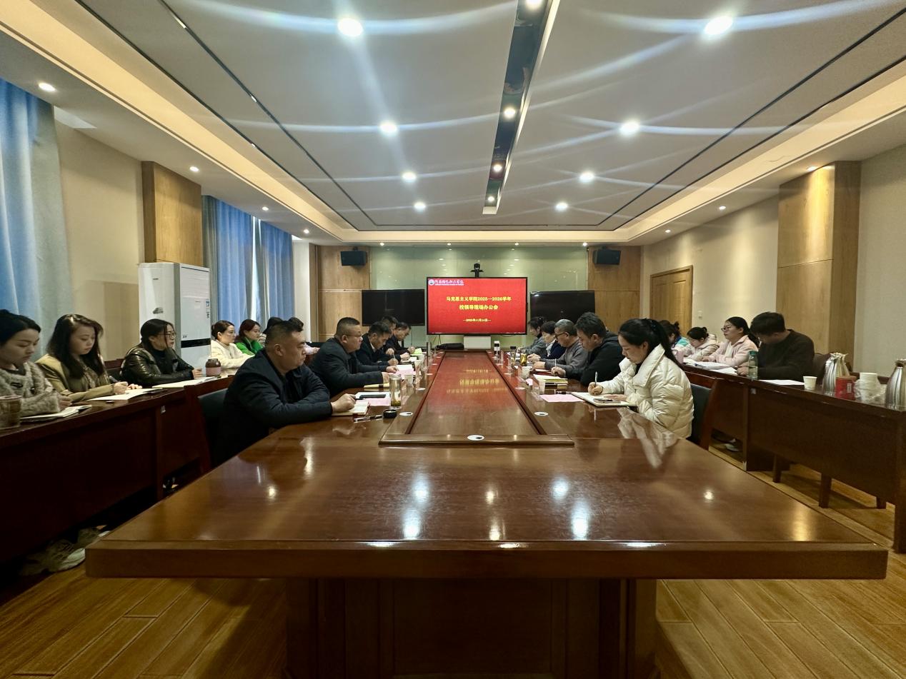 为深入学习贯彻习近平总书记对高校思政课建设的重要指示精神,进一步提升我校思政课和师资队伍建设水平,11月14日下午,我校在综合楼111会议室召开2025-2026学年校领导现场办公会,校党委书记肖绍俊,党委副书记、院长张道金,副院长王中亚、冯朝印,纪委书记、工会主席郭磊出席会议,党委宣传部部长、团委书记周一博,团委副书记高桂桂,马克思主义学院领导班子成员及思政课教师参加会议,会议由马克思主义学院党支部书记王中立主持。