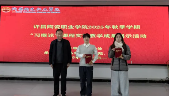 为深入贯彻习近平新时代中国特色社会主义思想,引导学生感受中华优秀传统文化的独特魅力和深厚底蕴,树立文化自觉与文化自信,成为优秀传统文化的传承者、践行者,推动思政小课堂与社会大课堂深度融合。2025年12月26日下午,学校教务处主办、马克思主义学院和校团委承办的2025年秋季学期《习近平新时代中国特色社会主义思想概论》课程实践教学成果展示活动,在郑州校区明德楼210报告厅顺利举行。马克思主义学院院长、教务处副处长康运河、校团委副书记高桂桂出席活动,教务科科长王慧子、马克思主义学院院长助理瞿园园、马克思主义学院教学秘书李文超、“毛泽东思想和中国特色社会主义理论体系概论”教研室主任王佳、陶瓷艺术与智能建造学院分团委书记蔡壮壮担任本次活动的评委。“习近平新时代中国特色社会主义思想概论”教研室主任及任课教师、参赛学生以及各学院学生代表参与了此次活动。