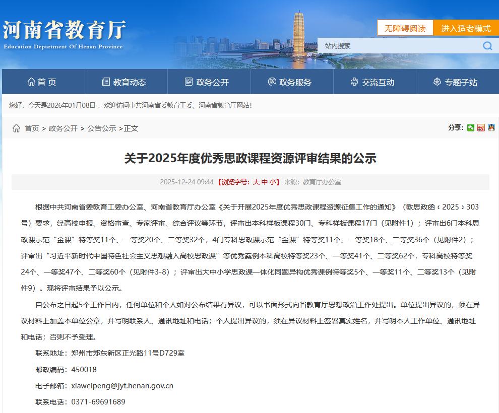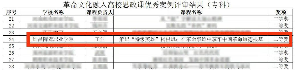 近日,中共河南省委教育工委、河南省教育厅2025年度优秀思政课程资源征集评选结果正式公布。根据中共河南省委教育工委、河南省教育厅下发的《关于开展2025年度优秀思政课程资源征集工作的通知》(教思政函[2025]303号),马克思主义学院积极响应号召,组织教师深耕教学实践、创新资源开发,积极申报各类项目。其中,马克思主义学院王佳老师报送的作品获评“革命文化融入高校思政课优秀案例”专科组二等奖。
