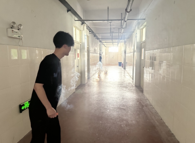 培训结束后,杜普杨教员组织全体师生进行了消防安全演练。随着烟雾弹爆炸,一阵急促的警报声响起,演练正式开始。全体师生迅速按照预定的逃生路线,弯腰低姿,快速、有序地从教学楼各个教室撤离到安全区域。整个逃生过程紧张有序,全体师生在短时间内全部安全撤离,充分展现了良好的应急反应能力和团队协作精神。