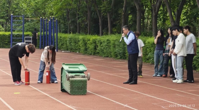 到达安全区域后,杜普杨教员现场演示了灭火器的正确使用方法。他详细讲解了灭火器的操作步骤:“一提、二拔、三握、四压”,并亲自示范如何对准火源根部进行灭火。随后,部分师生在杜教员的指导下,亲自体验了使用灭火器灭火的过程,掌握了灭火器的实际操作技能。此外,杜教员还对其他消防设备和器材的使用方法进行了讲解和演示,让师生们对各种消防设施有了更深入的了解。