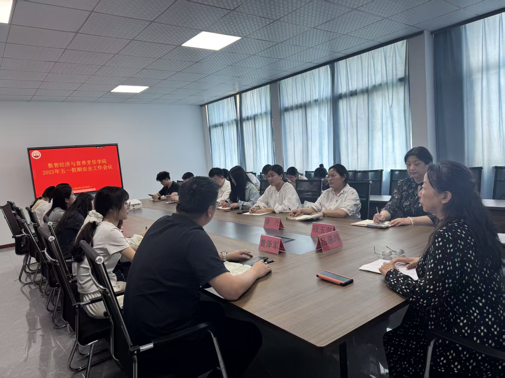 2025年4月29日中午,数智经济与营养烹饪学院召开2025年五一假期安全工作会议,全面部署假期安全保障工作,筑牢校园安全防线。此次会议聚焦学生假期安全教育与管理,旨在强化安全责任意识,保障师生度过平安祥和的五一假期。会议由吕院长主持,寇院长等院领导班子成员、全体教师及辅导员共同参会。