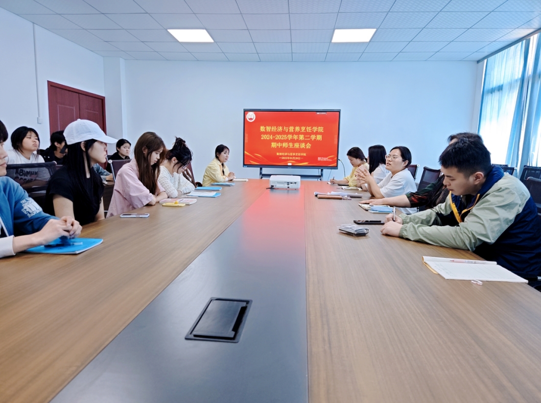 为倾听学生心声,提升育人质量,深入了解教学动态与学生需求,持续提升教育教学质量,数智经济与营养烹饪学院于2025年4月27日、28日分别在郑州校区教学楼会议室和许昌校区613会议室召开期中师生座谈会。院长吕惠珠、教学秘书潘丹、各教研室主任及骨干教师与来自两校区的学生展开面对面交流。