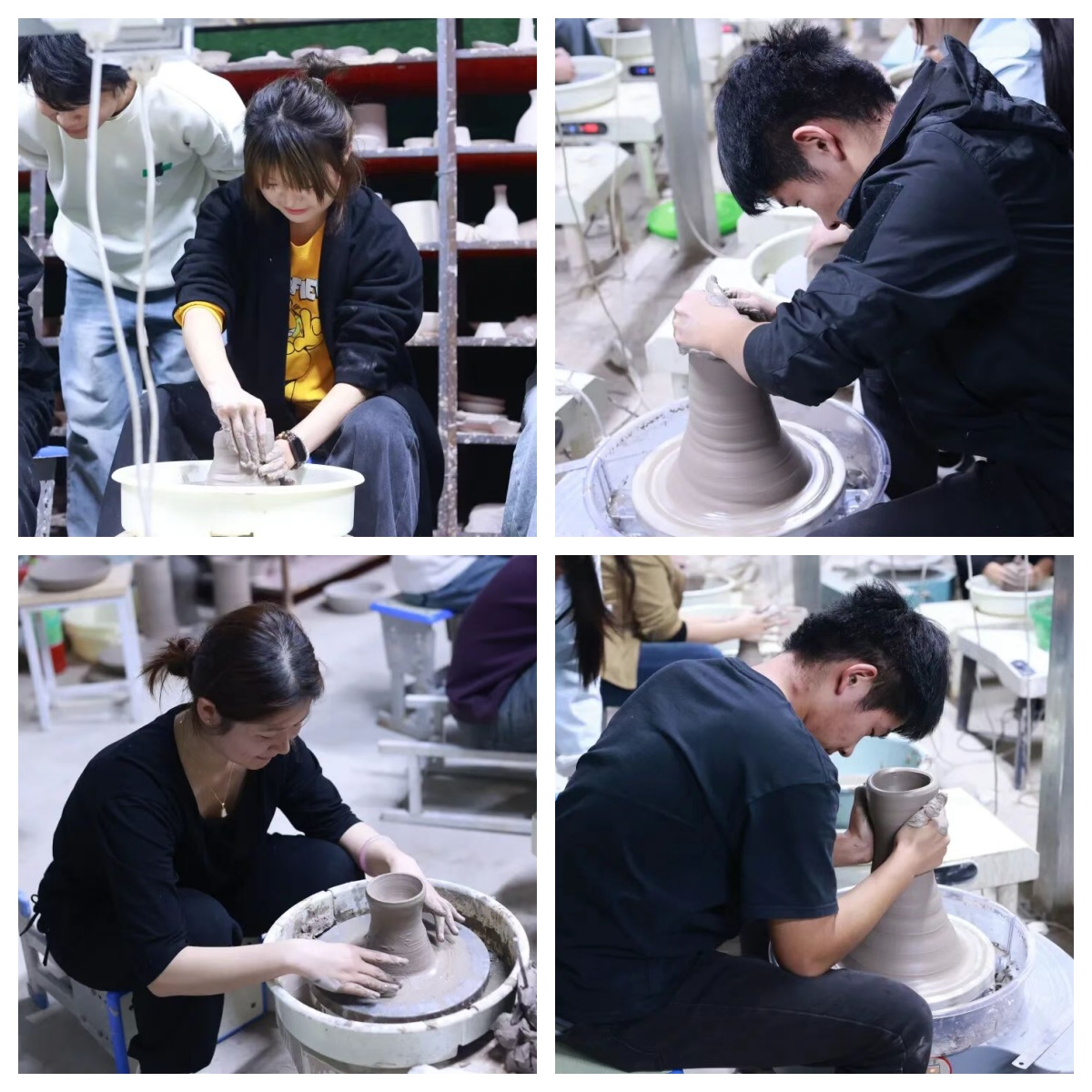 随后在陶瓷艺术与智能建造学院心理专员方玺尧及陶瓷专业学生代表的专业引导下,活动逐步深入。从最初学习拉坯、捏塑时指尖传来的泥土温润触感,到以“我的情绪容器”为主题进行自由创作时的专注投入,同学们都全情投入到与陶泥的对话中,以手抒情,以心塑形,将抽象的情感转化为具象的艺术形态。