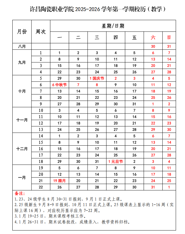 2025—2026学年第一学期校历(教学)