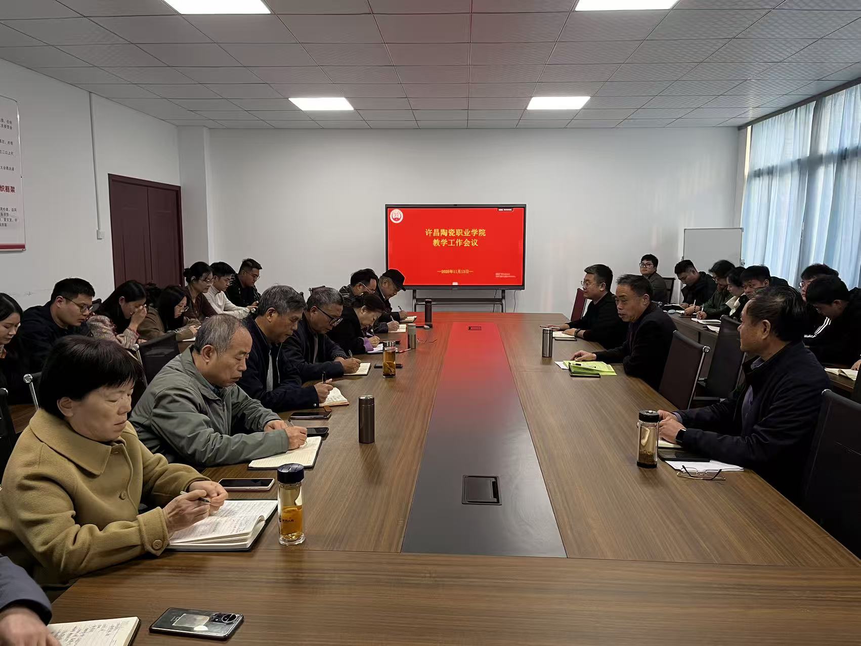 2025年11月13日,学校在613会议室组织召开2025-2026学年教学工作会议。会议由冯朝印院长主持,各教学单位院长、教学秘书、专业群主任及教务处全体人员参加会议。